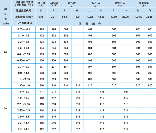 彈簧編號與定圧范圍
